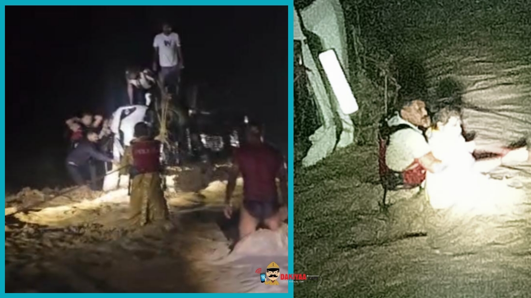 Tourists swept away in Shernala, DDC : जागेश्वर धाम से दर्शन कर लौट रहे उत्तर प्रदेश के पर्यटक आधी रात बड़े हादसे का शिकार हो गए। रात हुई मूसलधार बारिश से उफान पर आए शेरनाले के बहाव में पर्यटकों की कार बह कर पलट गई और वहां चीख-पुकार मच गई। सूचना मिलते ही मौके पर पहुंची चोरगलिया पुलिस ने अपनी जान की परवाह किए बगैर नाले में छलांग लगा दी और कार में सवार सभी 10 पर्यटकों को तेज बहाव के बीच से सुरक्षित निकाल लिया।