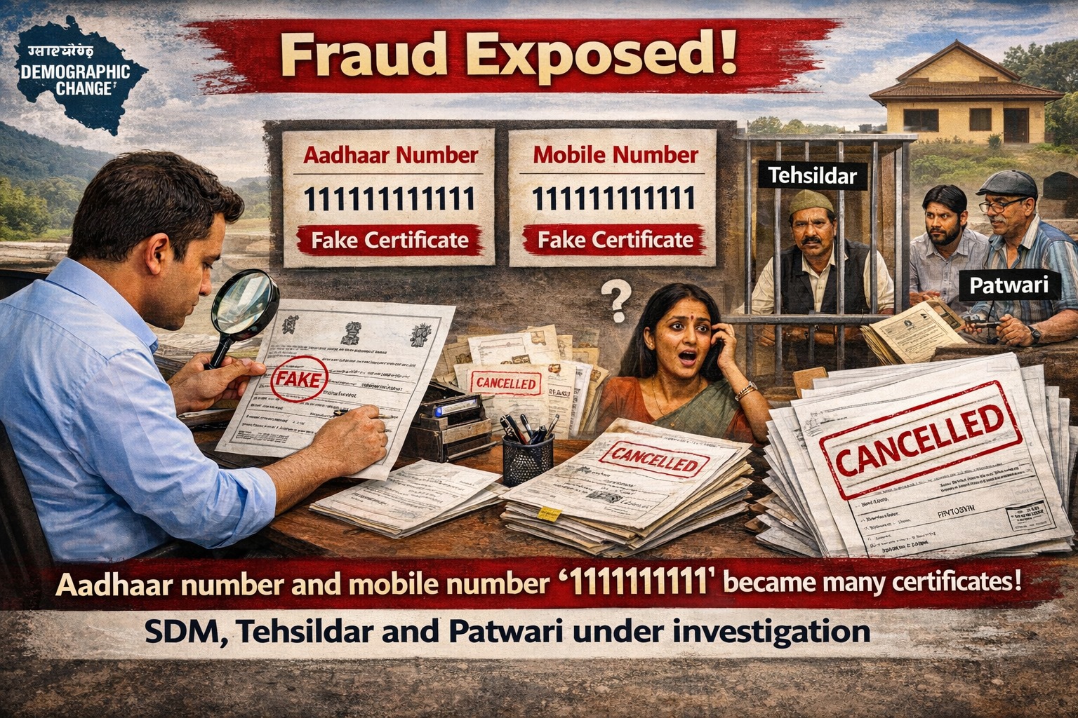 Demographic changes in Uttarakhand, DDC : उत्तराखंड में डेमोग्राफी चेंज के खुलासे में शर्मनाक और हैरान करने वाला भंडाफोड़ हुआ है। नैनीताल जिले के हल्द्वानी में प्रशासन की स्थायी निवास प्रमाण पत्रों की जांच में खुलासा हुआ कि आवेदक का आधार नंबर और मोबाइल नंबर ऐसा था, जो देश के प्रधानमंत्री के पास भी नहीं होगा। जांच में आधार का नंबर 1111111111 और मोबाइल नंबर 1111111111 है, जो असंभव है।