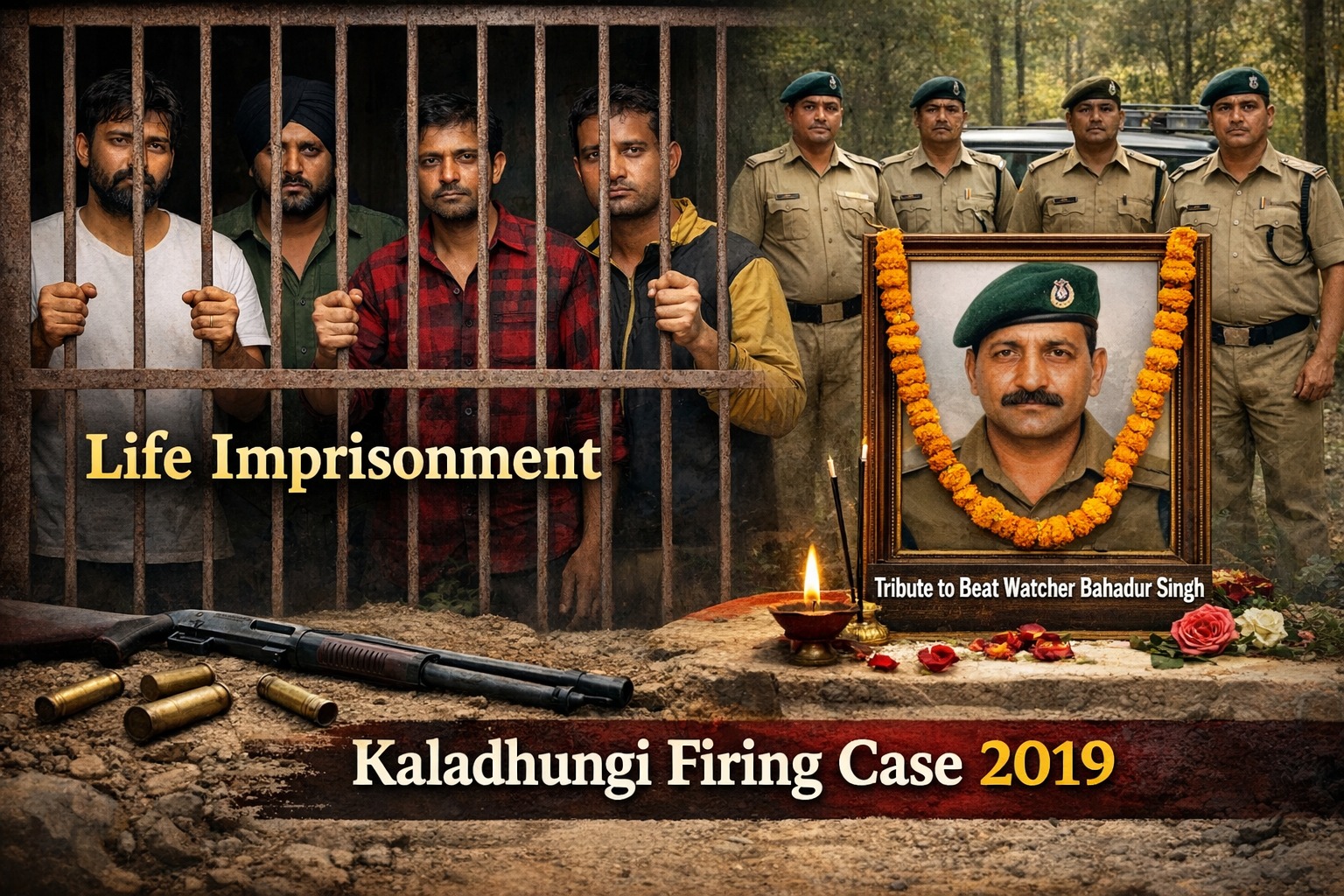 Life imprisonment in the Beat Watcher murder case, DDC : नैनीताल जिले के कालाढूंगी थाना क्षेत्र में साढ़े पांच साल पुराने सनसनीखेज फायरिंग मामले में अदालत ने बड़ा फैसला सुनाया है। वनकर्मियों पर जानलेवा हमला करने के दोषी चार आरोपियों को उम्रकैद की सजा दी गई है। इस हमले में बीट वॉचर बहादुर सिंह की मौके पर जान चली गई थी, जबकि एक अन्य वनकर्मी गंभीर रूप से घायल हुआ था।
