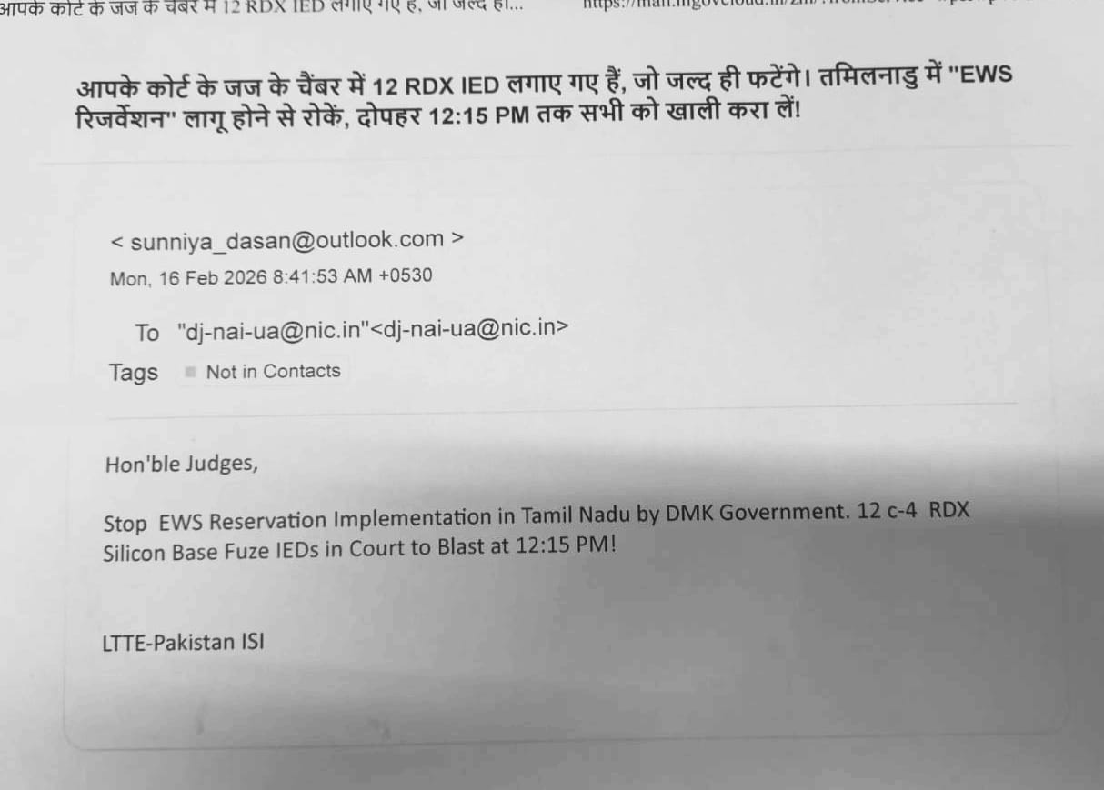 पुलिस के अनुसार ई-मेल में जज के चैंबर में “12 आरडीएक्स आईईडी” लगाए जाने की बात कही गई थी और एक विशेष कानूनी मुद्दे का उल्लेख कर दहशत फैलाने का प्रयास किया गया। मेल में प्रतिबंधित संगठनों के नाम भी लिखे गए थे।